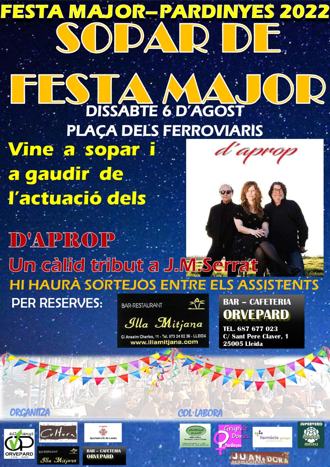 Aquest dissabte 6 d’agost veniu a la Plaça dels Ferroviaris a gaudir del concert del D’APROP i el seu tribut a la música de Joan Manuel Serrat.
